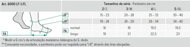 Segmento compressivo ajustável para o pé (modelos LF/LFL)