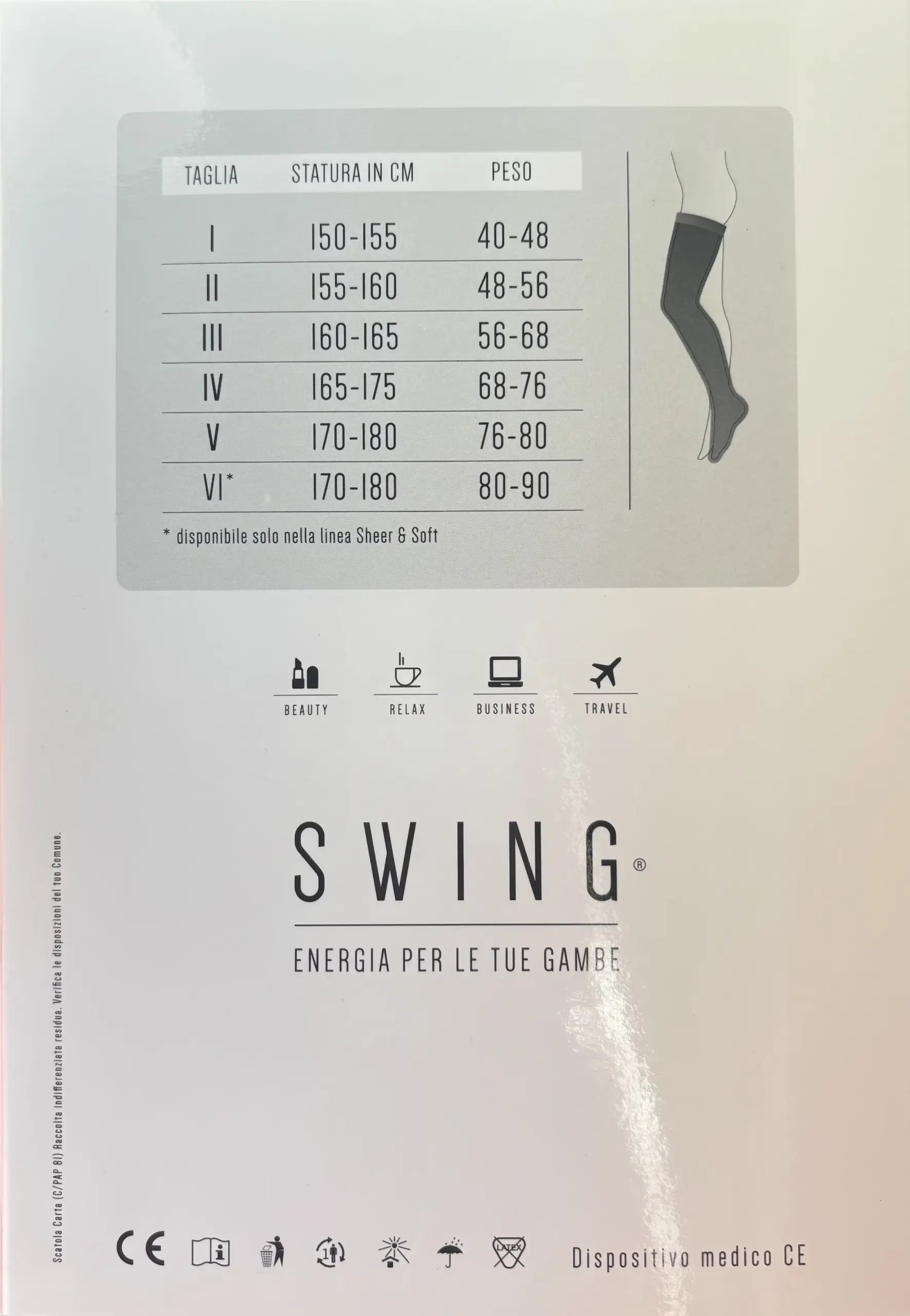 As Swing Classic AG 140 Den são meias de compressão até à raiz da coxa, concebidas para oferecer compressão preventiva suave em toda a extensão da perna. São indicadas para quem procura alívio da sensação de pernas cansadas e pesadas, prevenindo pequenos edemas funcionais. O design clássico e discreto garante elegância e conforto, sendo ideais para uso diário, em viagens ou em longos períodos de pé ou sentada.